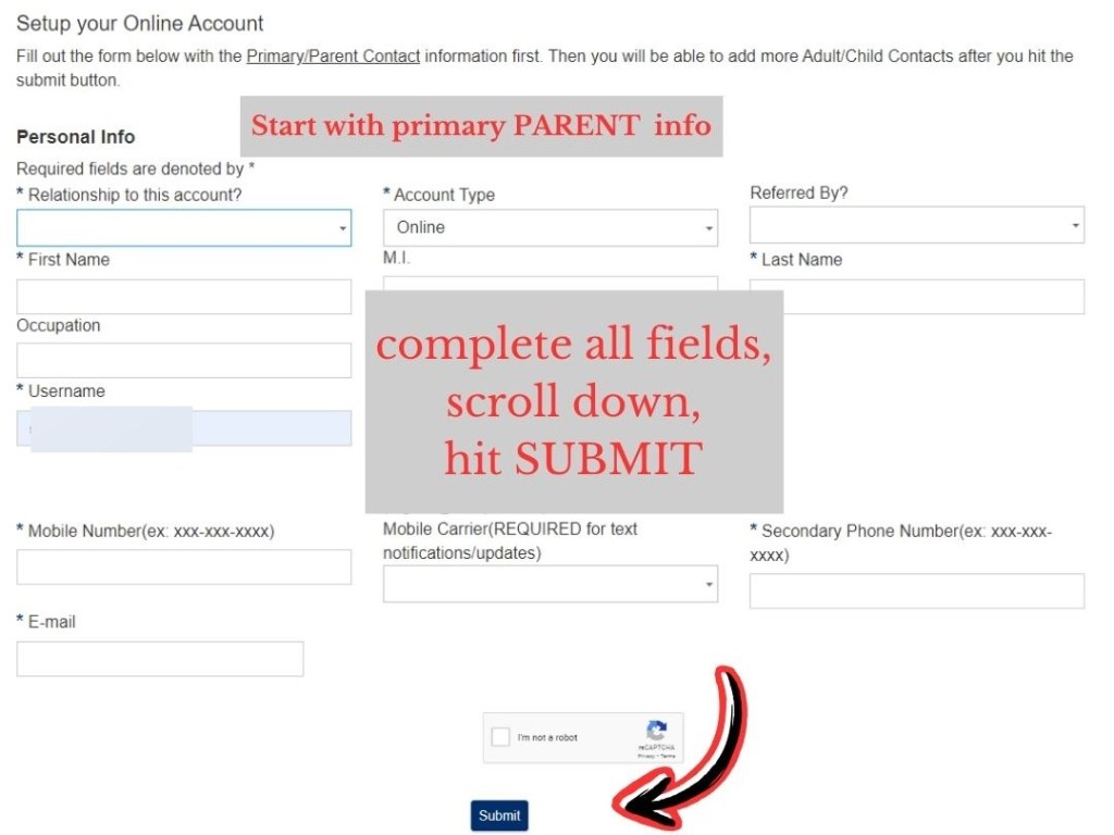 3. Complete information for PRIMARY account holder first (must be a parent or guardian).